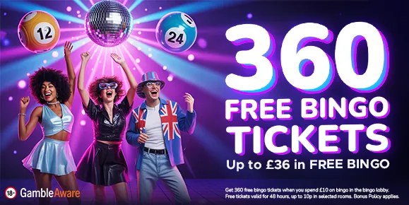 Get 360 free bingo tickets when you spend £10 on bingo in the bingo lobby.